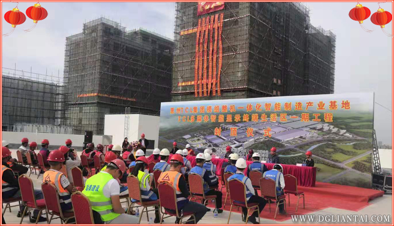 由联泰建设集团承建的惠州TCL集团模组整机一体化智能制造产业基地TCL多媒体智能显示终端生活区一期工程顺利封顶。项目位于惠州市仲恺高新技术开发区,项目用地面积为701030平方米,建筑面积为1020229平方米。本次建设的是宿舍1(12号建筑)、宿舍3(14号建筑)、宿舍6(17号建筑)、食堂2(11A号建筑)及停车楼(24号建筑)、连廊8、连廊9。宿舍1、宿舍3和宿舍6均为高层宿舍,其中宿舍1和宿舍3为地上八层,宿舍6均为地上九层。各栋宿舍首层主要设置门厅、宿舍及洗衣房、配电房等配套用房;二层及以上各层则设置宿舍。停车楼为多层公共建筑,地下一层,地上四层。地下一层为生产、消防水池及相应水泵房;地上一层的北侧主要为办公室、培训室,南侧则是消控中心、发电机房、配电房等配套用房以及消防车库;二层及二层以上则为停车库。项目造价为2.6亿多人民币。